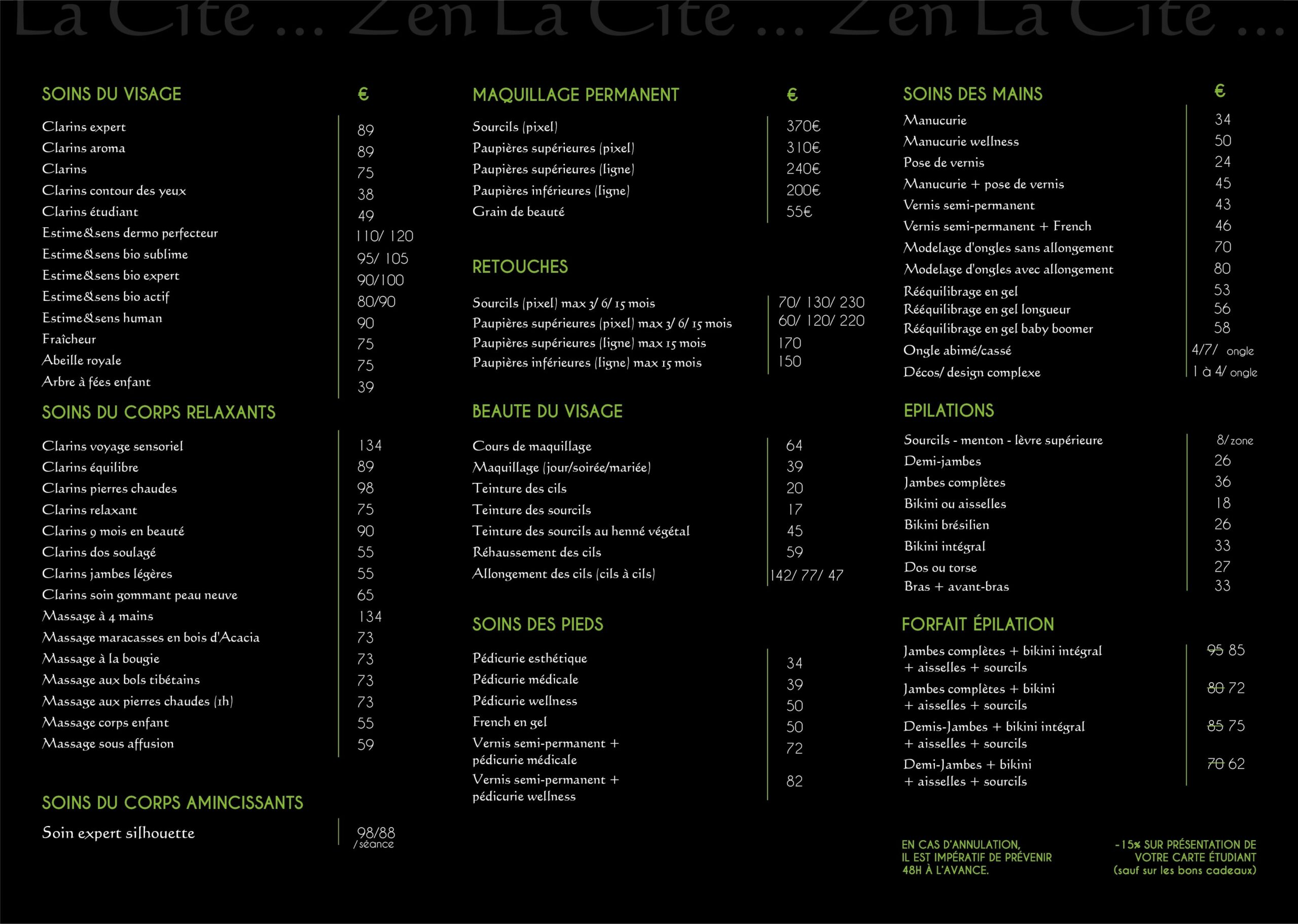 La Cité… Zen vous offre une large gamme de soins afin de vous faire passer un moment de pure détente et relaxation.