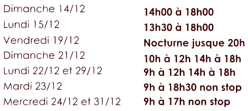 Mardi : 10h-12h et 14h-18h30